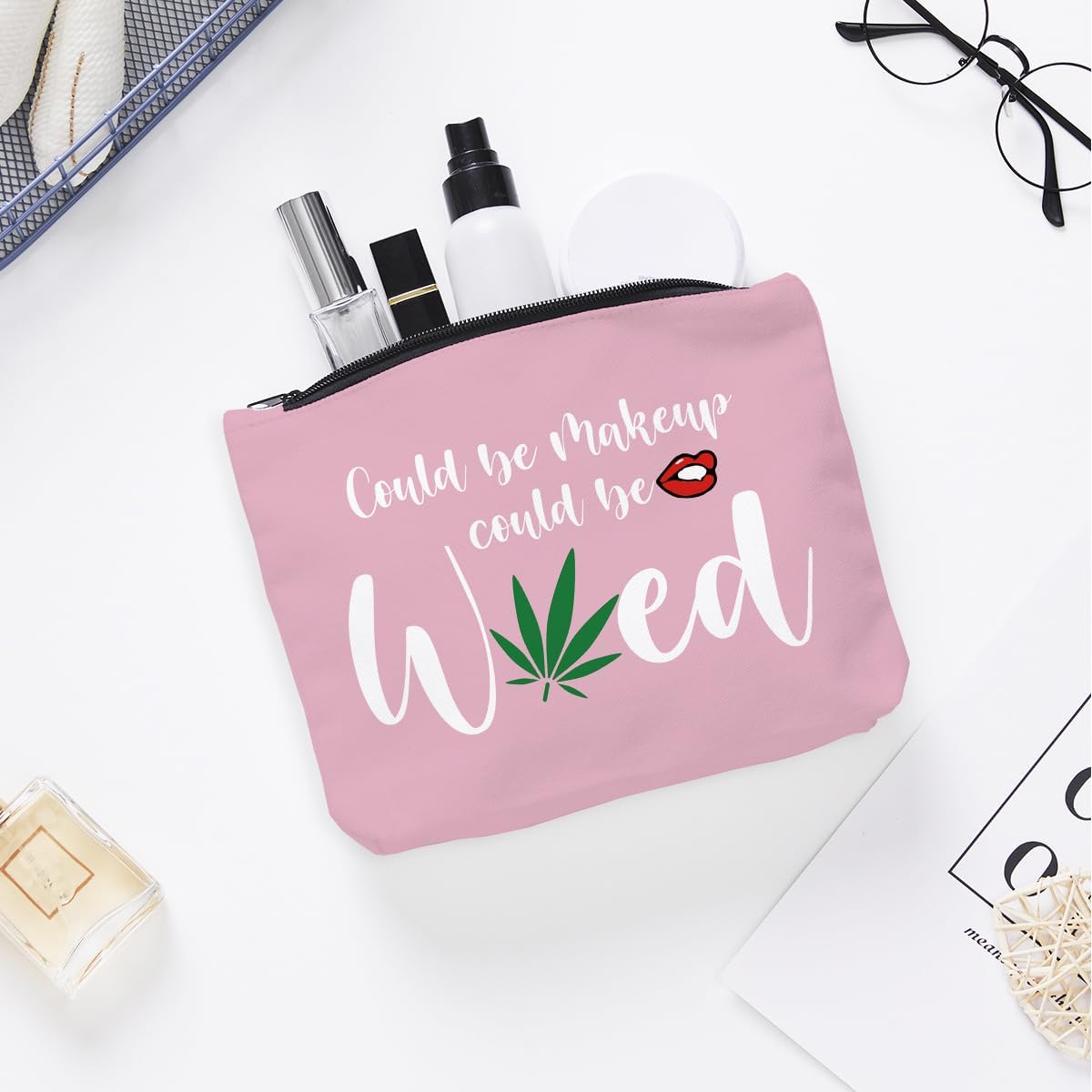 Makeup Bag, Travel Cosmetic Bag, For Women Best Friends Sister Funny Weed Gifts, Small Makeup Zipper Pouch Travel Accessories Organizer Bag Toiletry Case Gifts for Birthday Christmas. pink