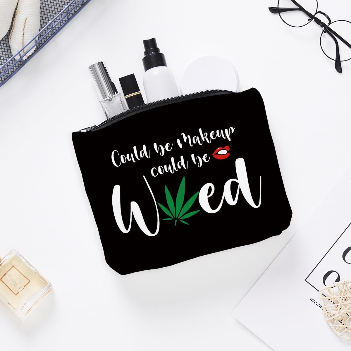 Makeup Bag, Travel Cosmetic Bag, For Women Best Friends Sister Funny Weed Gifts, Small Makeup Zipper Pouch Travel Accessories Organizer Bag Toiletry Case Gifts for Birthday Christmas. Black